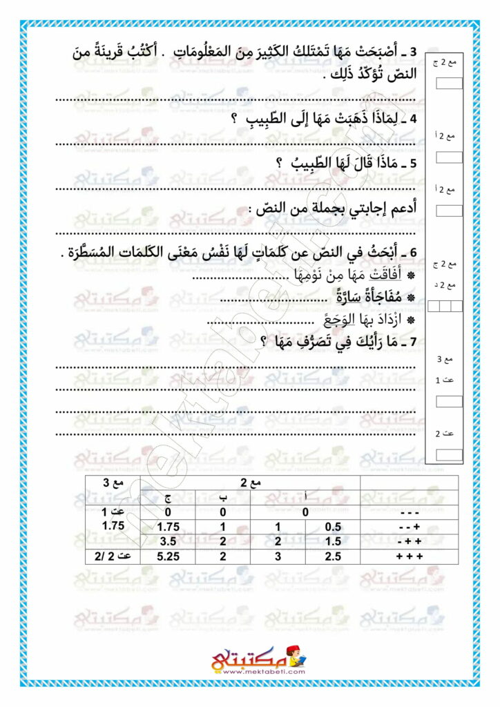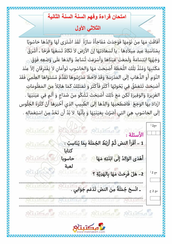 امتحان قراءة وفهم السنة الثانية الثلاثي الأول