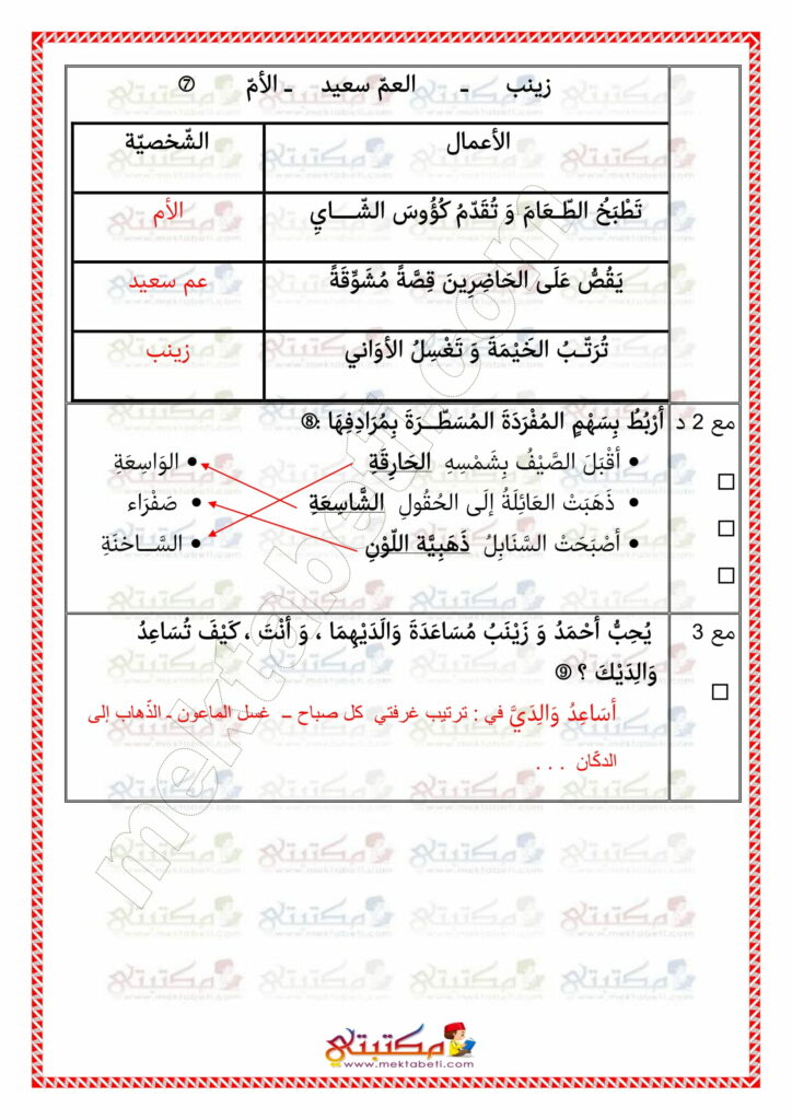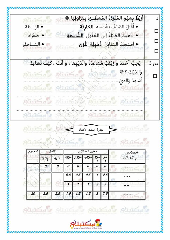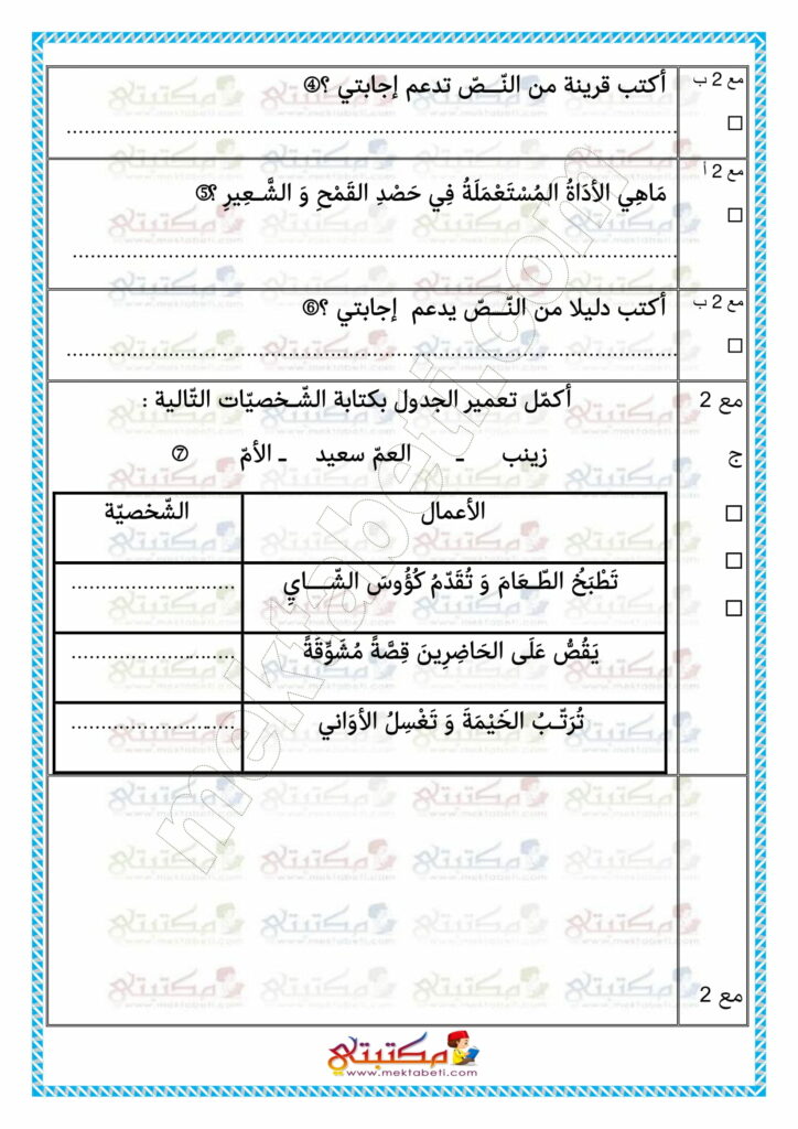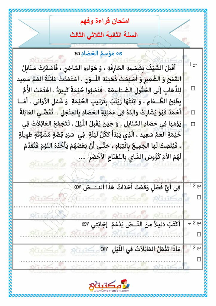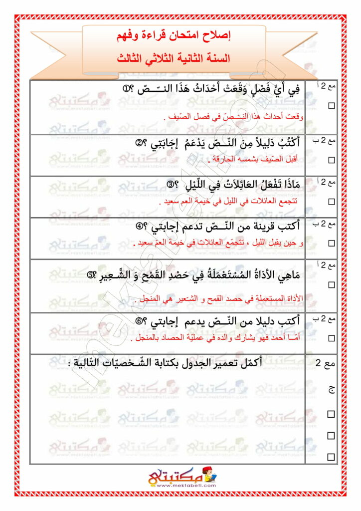 امتحان قراءة وفهم السنة الثانية الثلاثي الثالث مع الإصلاح