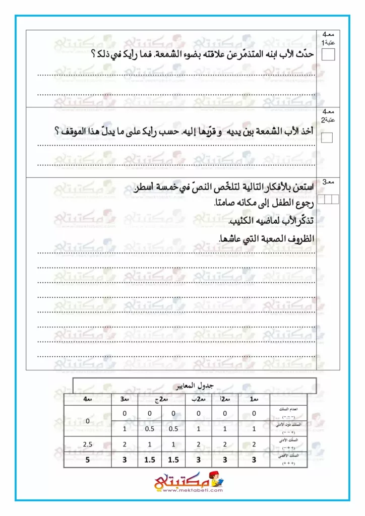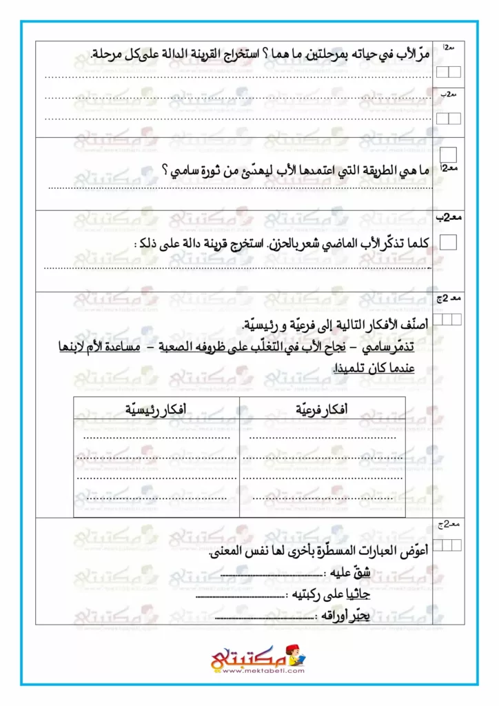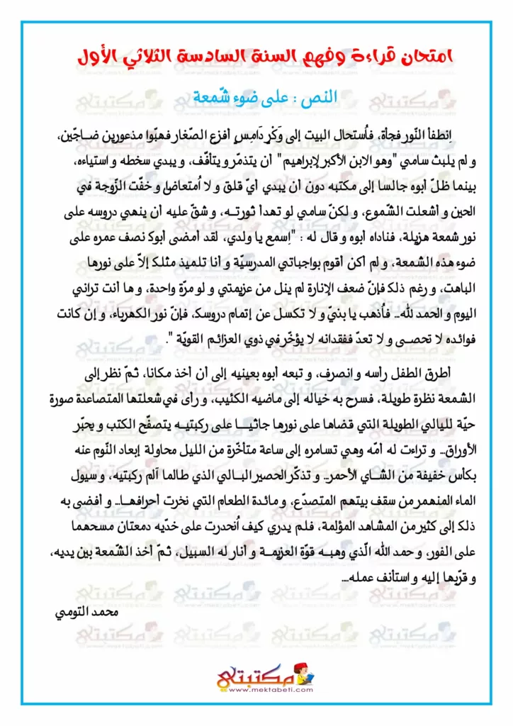 امتحان قراءة وفهم السنة السادسة الثلاثي الأول
