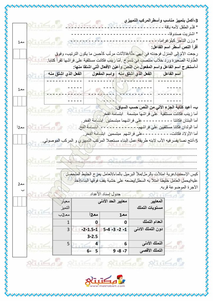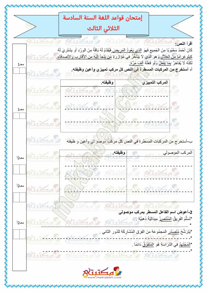 - أساسي / الثلاثي الثالث / امتحانات / سادسة إبتدائي / عربية