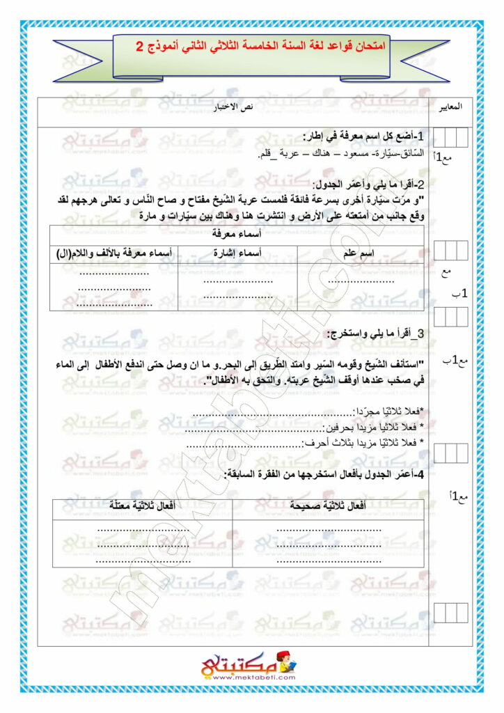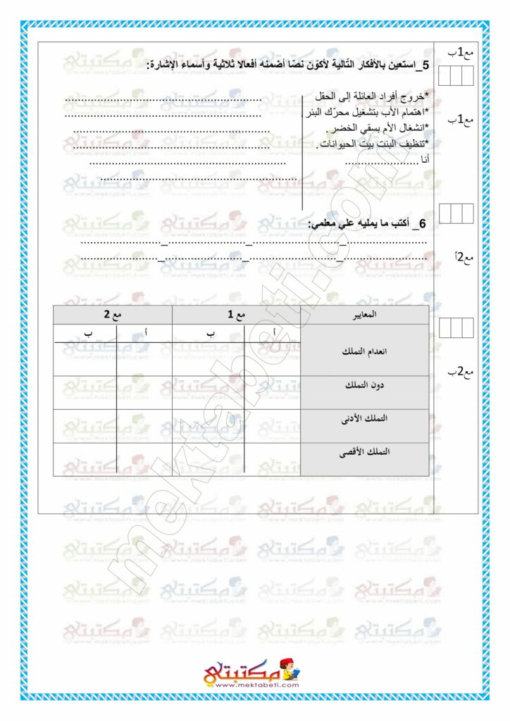 - أساسي / الثلاثي الأول / امتحانات / خامسة إبتدائي / عربية