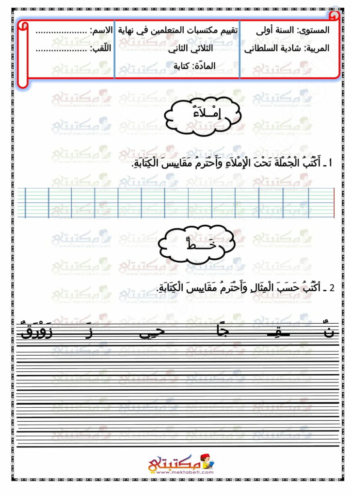 امتحان كتابة السنة الأولى الثلاثي الثاني