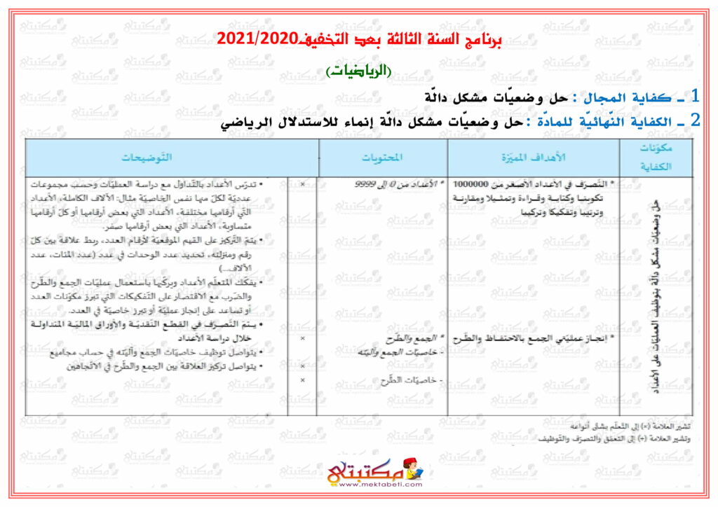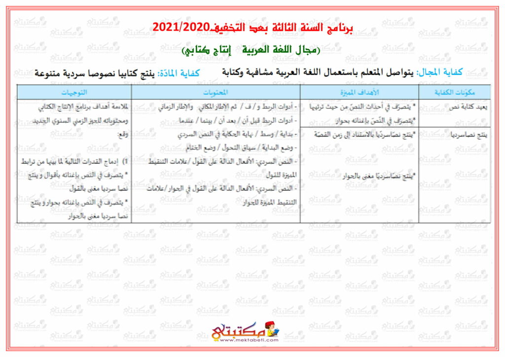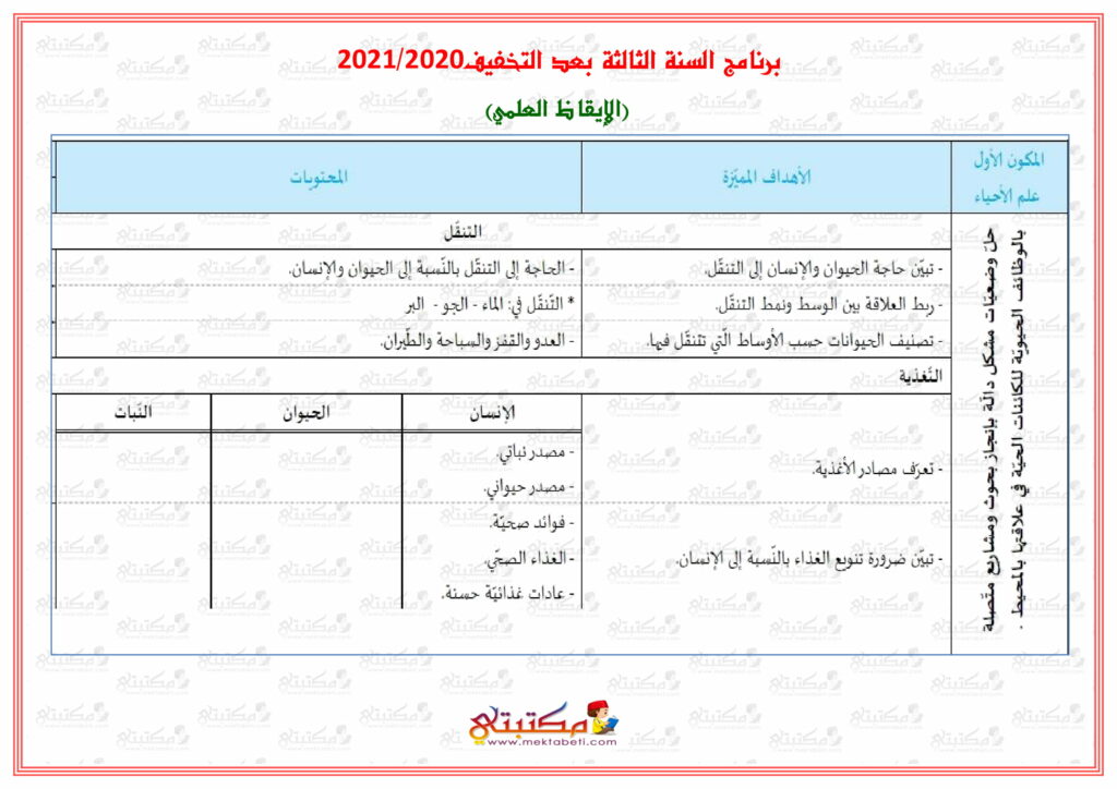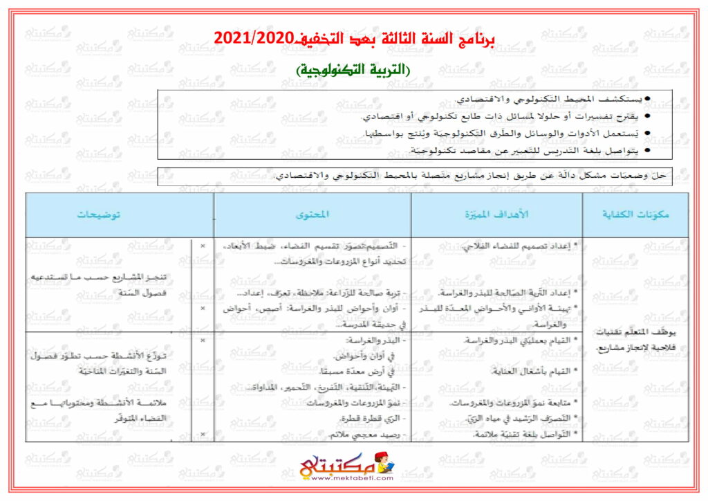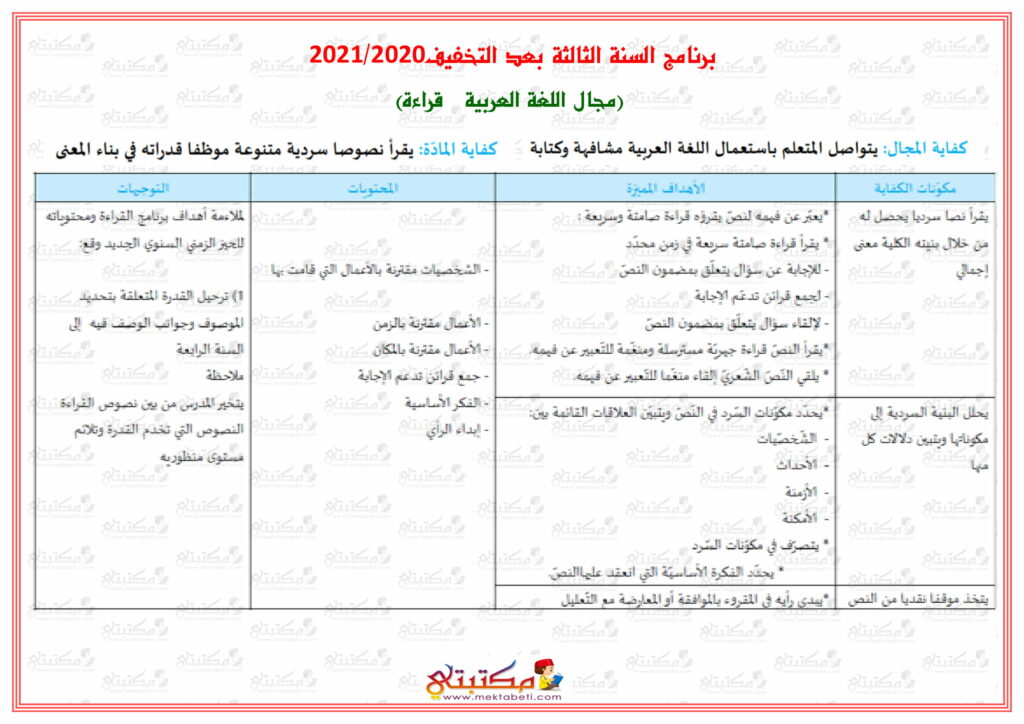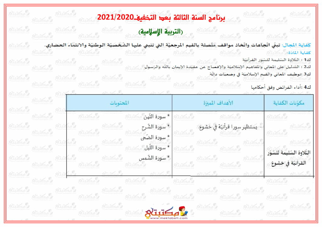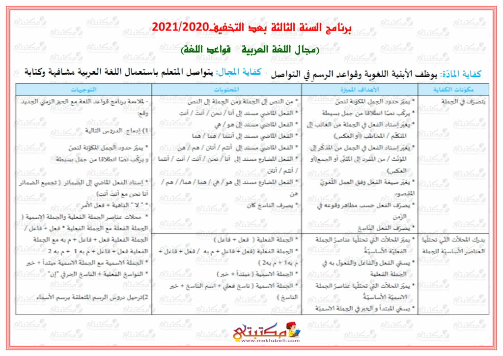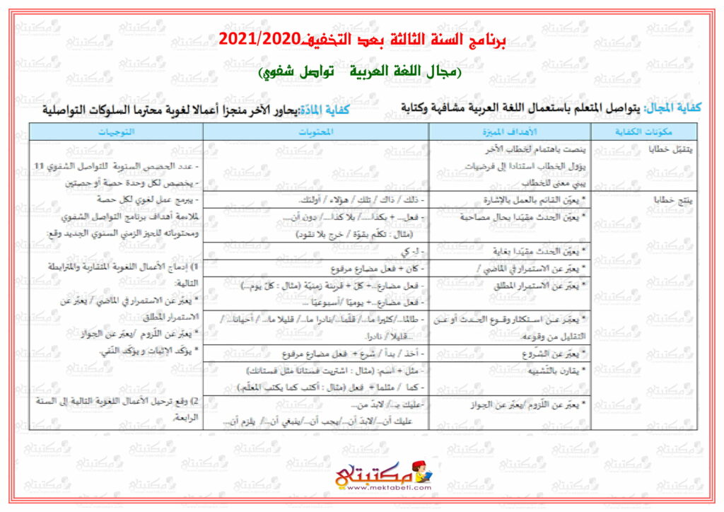 برنامج السنة الثالثة بعد الخفيف 2021/2020