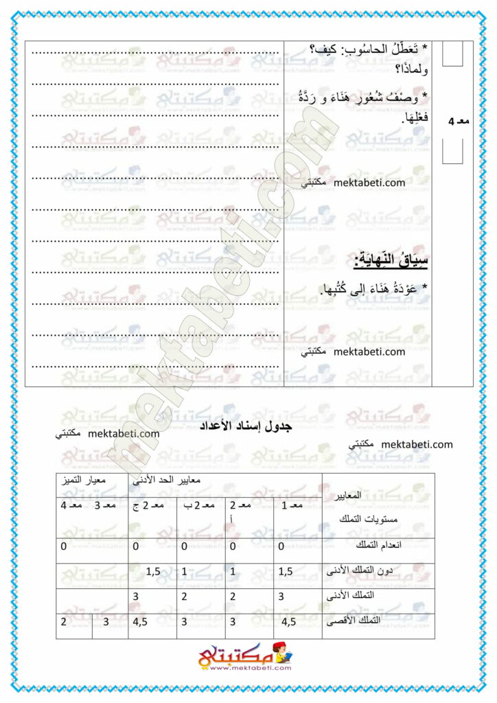 تقييم في مادة الإنتاج الكتابي السنة الرابعة السداسي الثاني