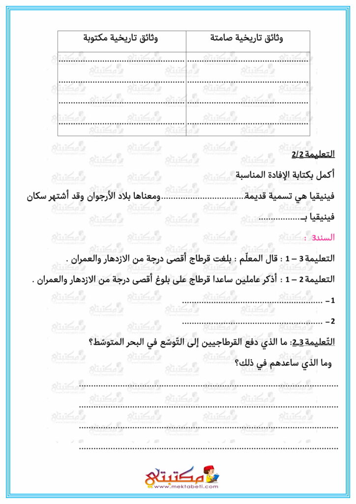 - أساسي / الثلاثي الأول / امتحانات / امتحانات / خامسة إبتدائي / مواد اجتماعية