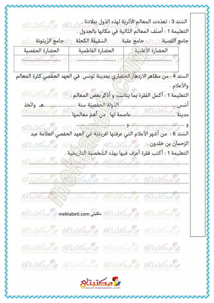 تقييم في مادة التاريخ السنة الخامسة السداسي الثاني