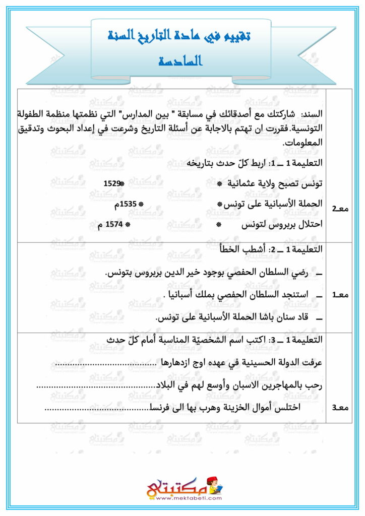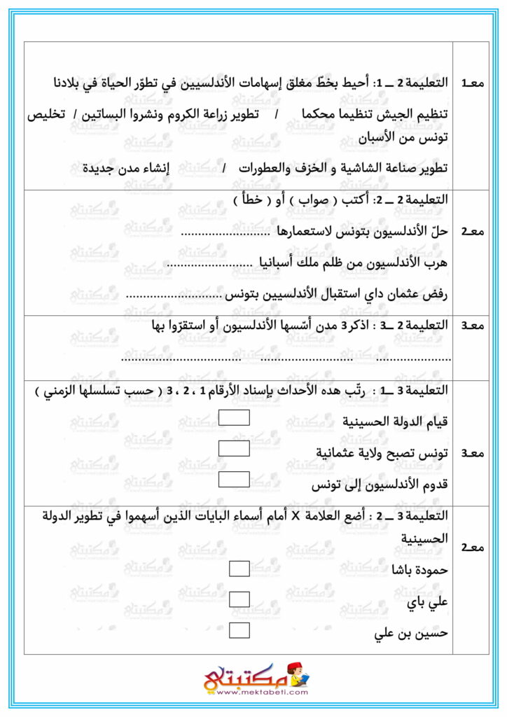 امتحان رياضيات السنة الخامسة الثلاثي الثاني