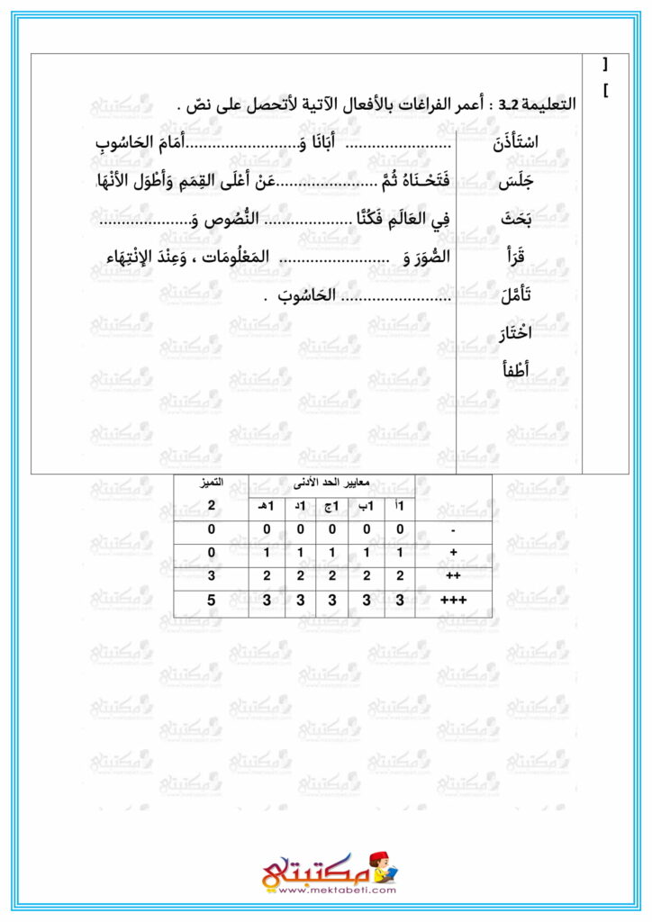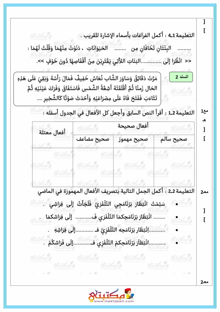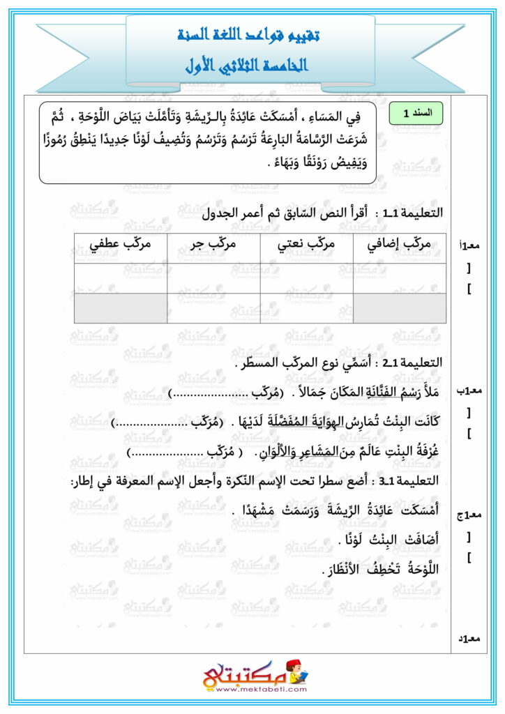 - أساسي / الثلاثي الأول / امتحانات / امتحانات / خامسة إبتدائي / عربية