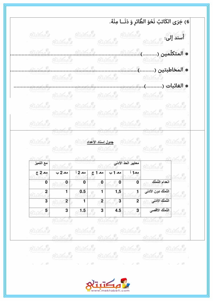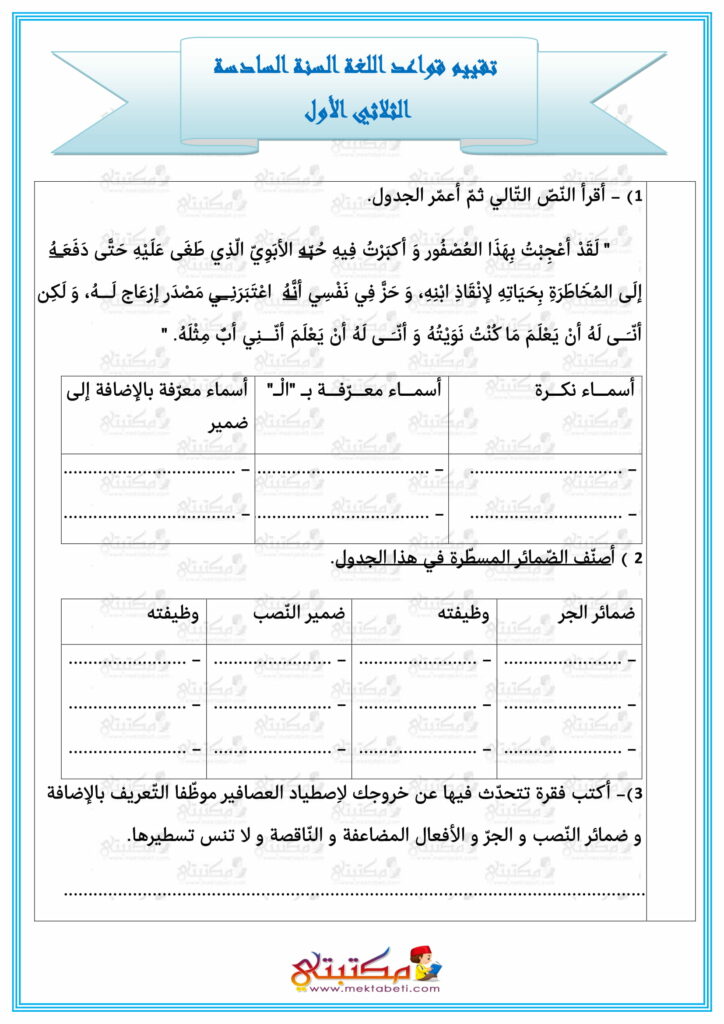 تقييم قواعد اللغة السنة السادسة الثلاثي الأول