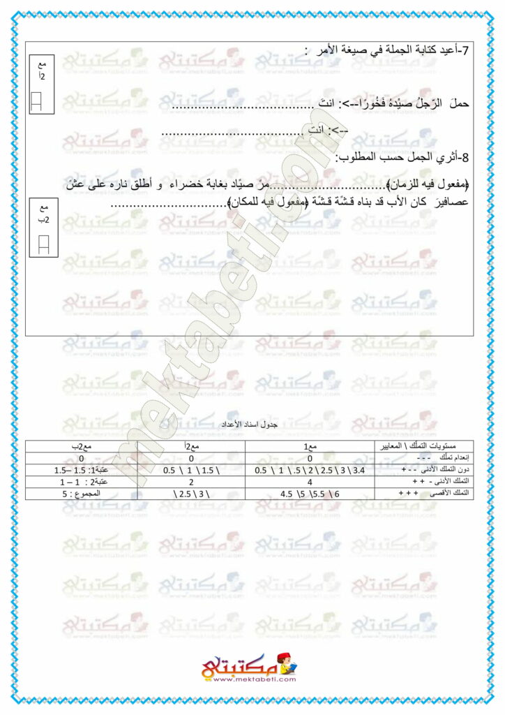 - أساسي / الثلاثي الثالث / امتحانات / خامسة إبتدائي / عربية