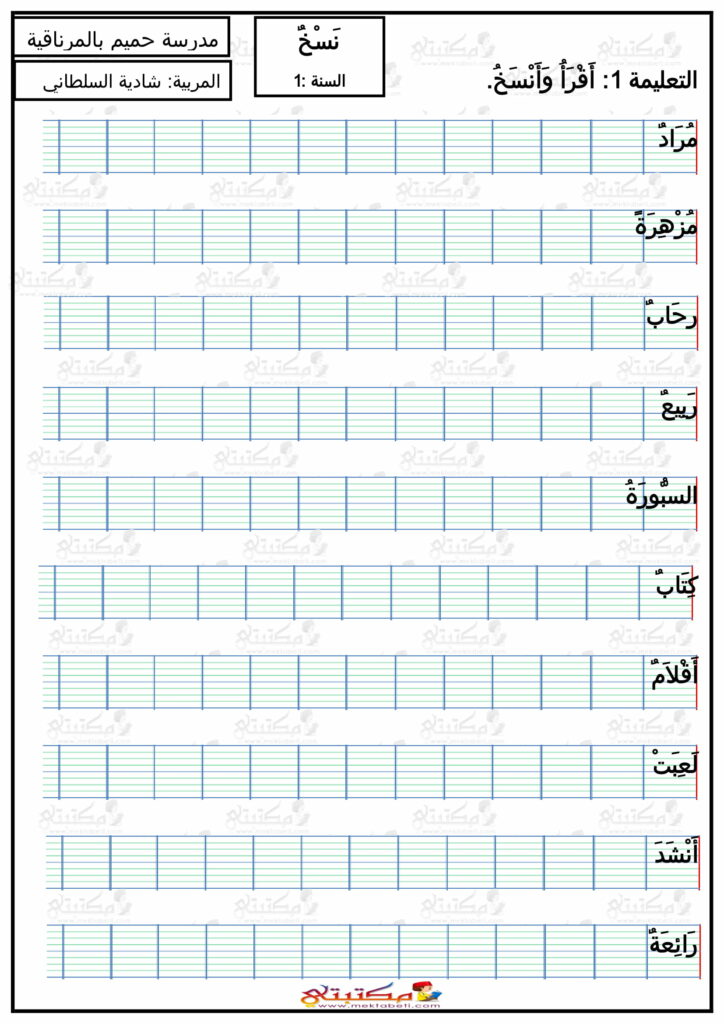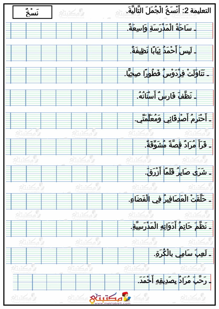 تمارين نسخ السنة الأولى الثلاثي الأول