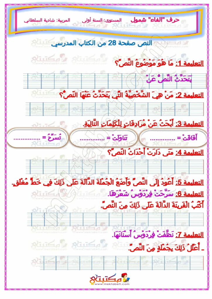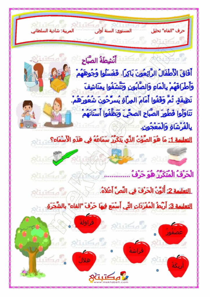 - أساسي / أولى إبتدائي / عربية