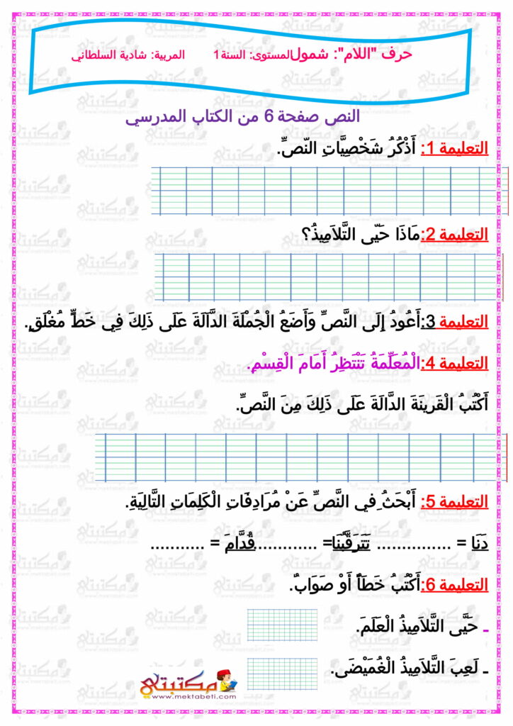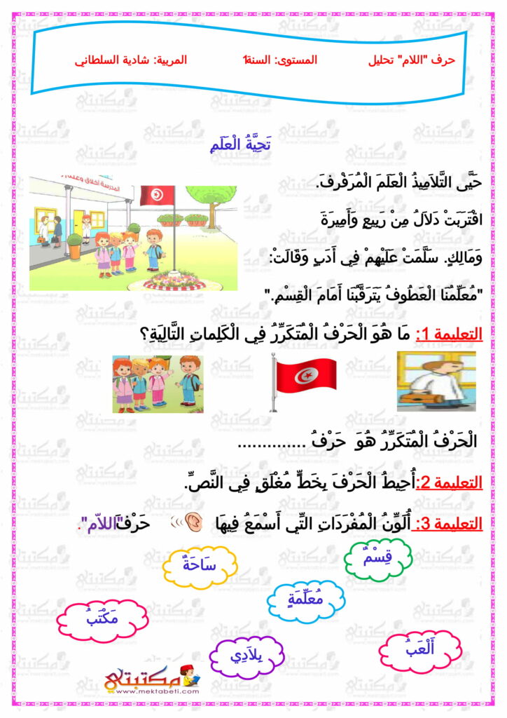حرف اللام السنة الأولى شمول وتحليل وتركيب
