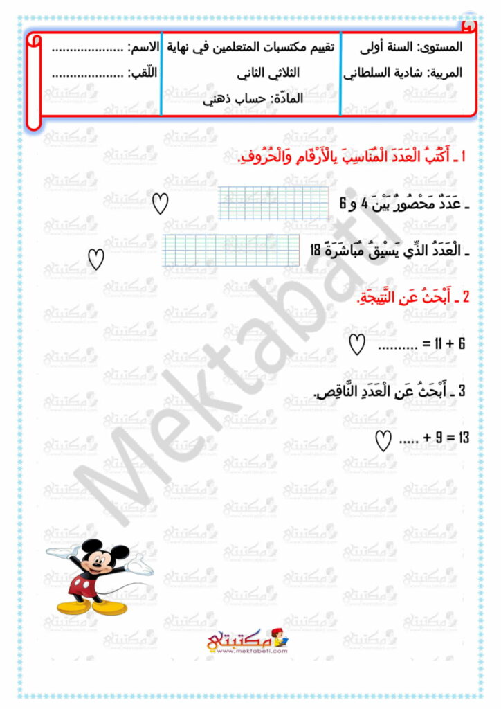- أساسي / أولى إبتدائي / الثلاثي الثاني / امتحانات / علوم