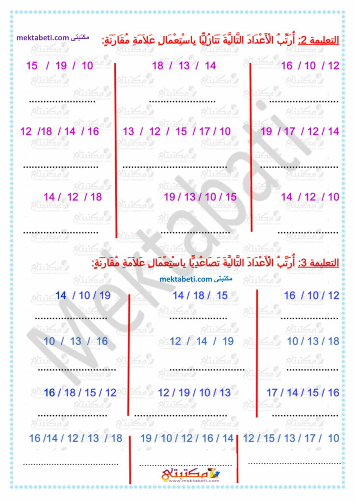 رياضيات السنة الأولى الأعداد من 0 إلى 19