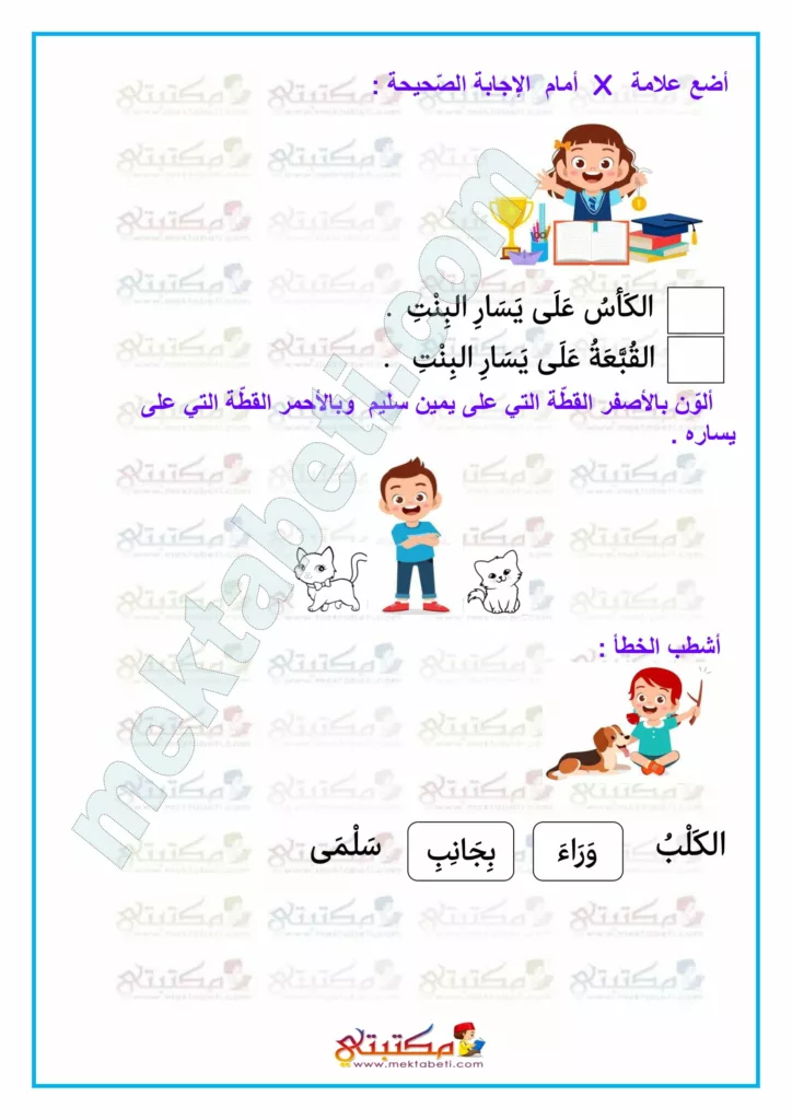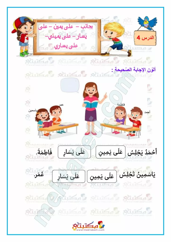 رياضيات السنة الأولى بجانب على يمين على يسار على يميني على يساري