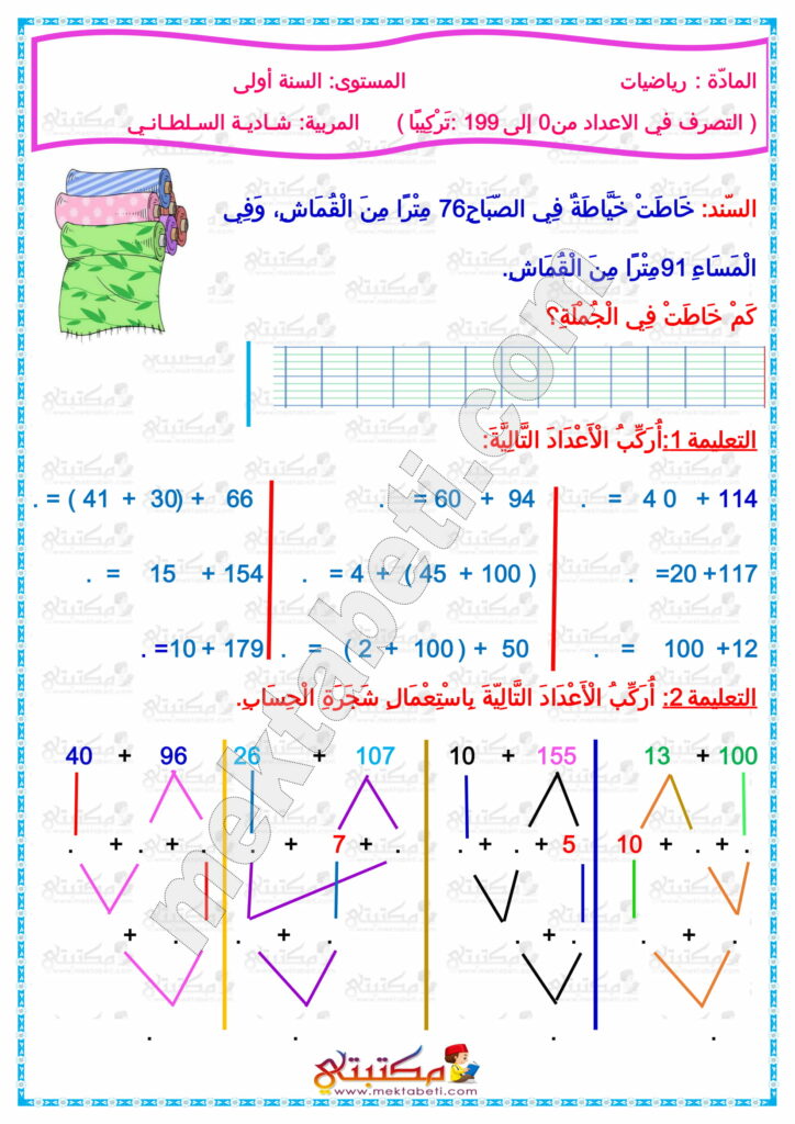 رياضيات السنة الثانية الأعداد من 0 إلى 199 تفكيكا وتركيبا