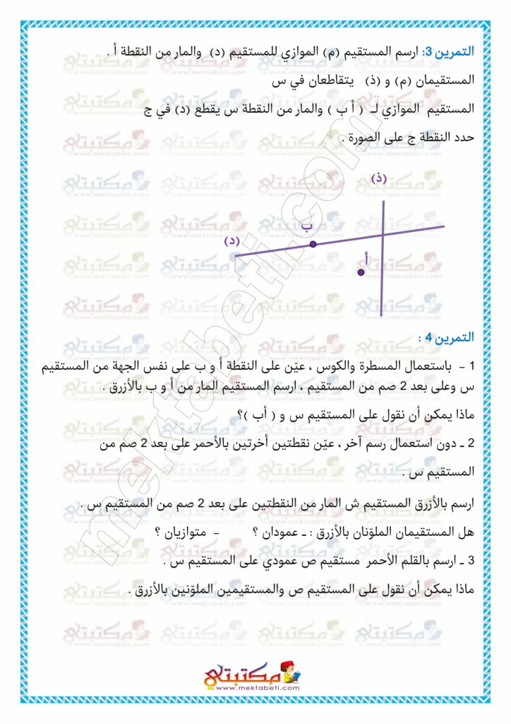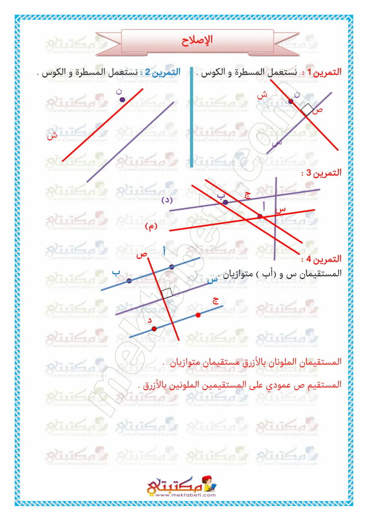 رياضيات السنة الخامسة أرسم المستقيمات المتعامدة والمستقيمات المتوازية
