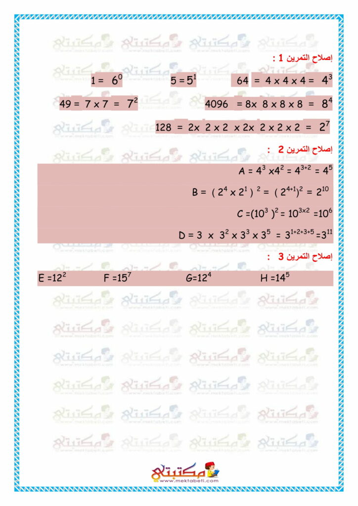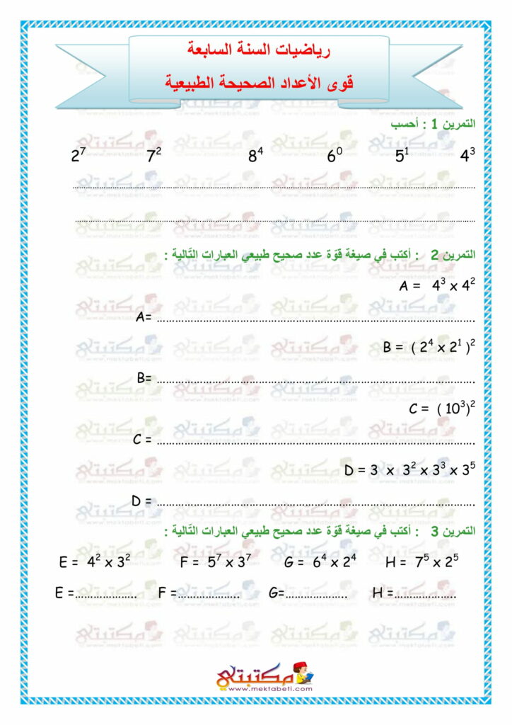 رياضيات السنة السابعة قوى الأعداد الصحيحة الطبيعية