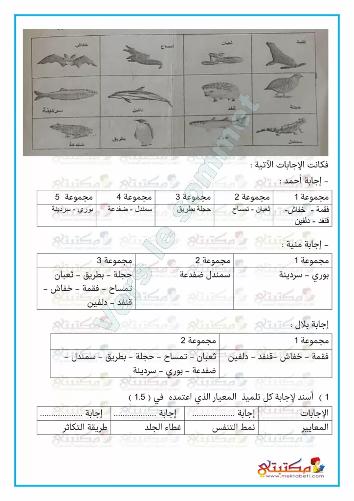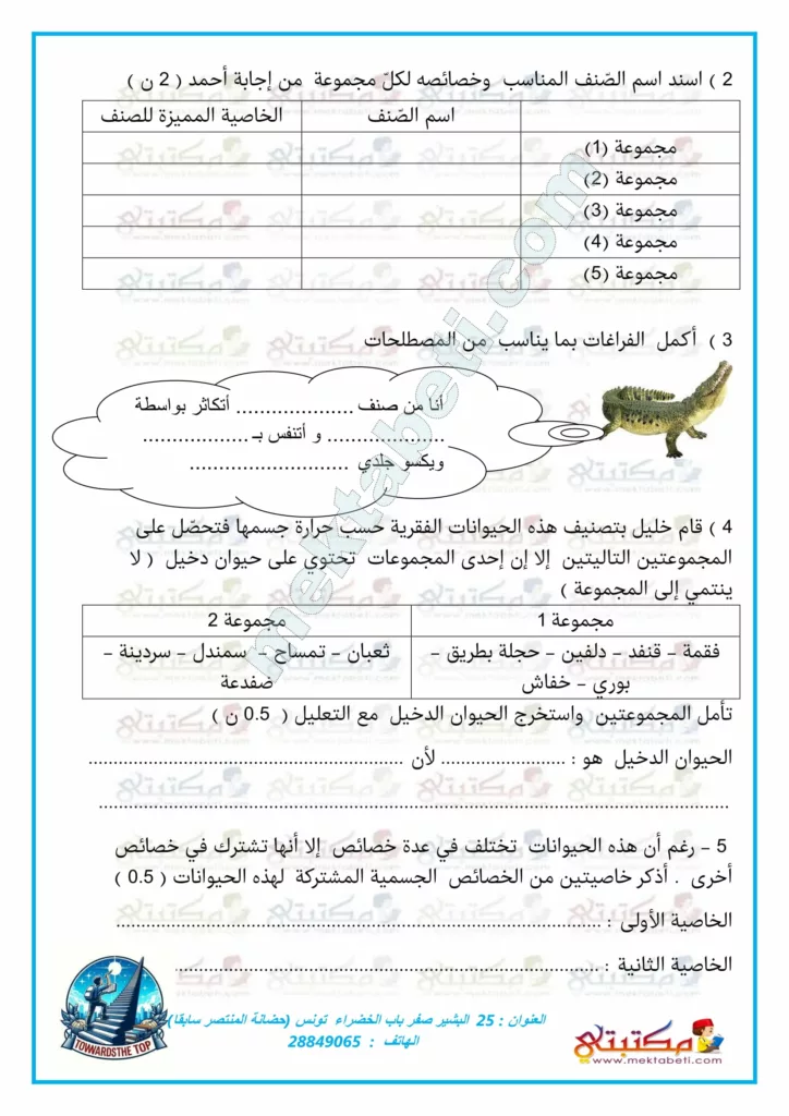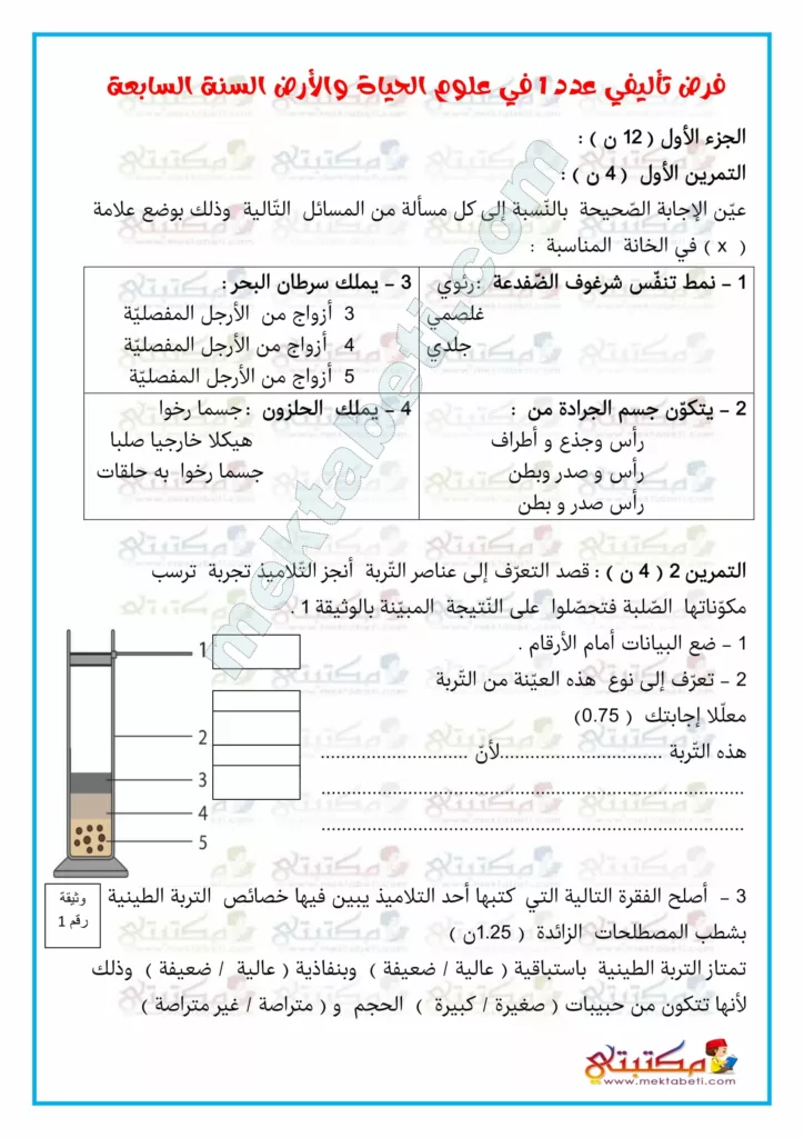 فرض تأليفي عدد 1 علوم الحياة والأرض السنة السابعة