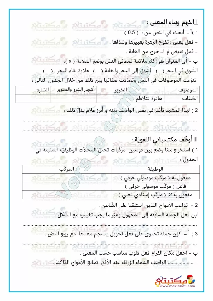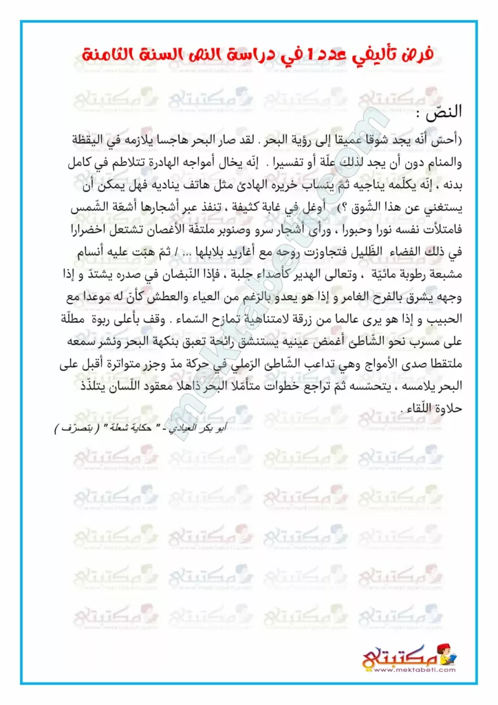 فرض تأليفي عدد 1 في دراسة النص السنة الثامنة