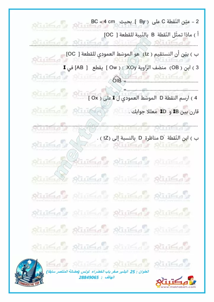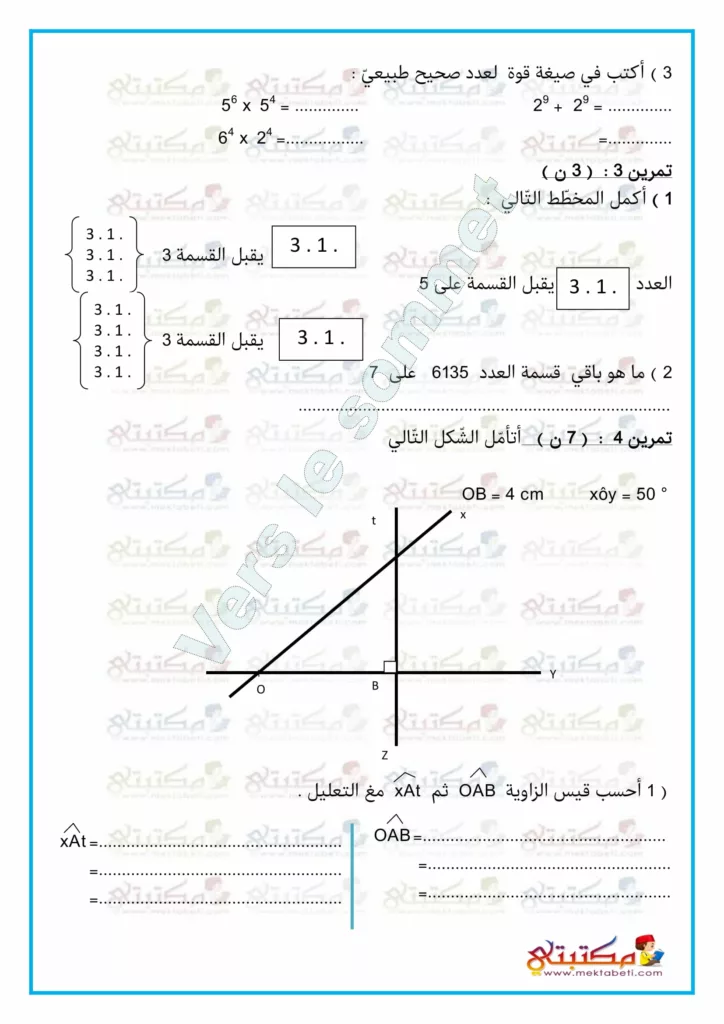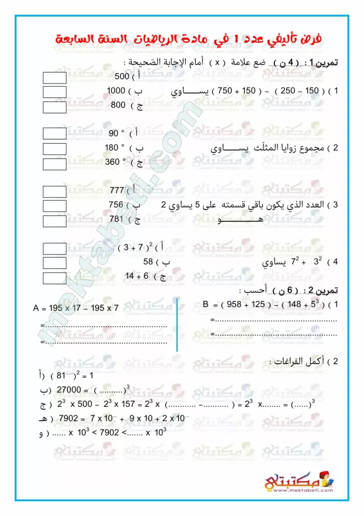 فرض تأليفي عدد 1 مادة الرياضيات السنة السابعة
