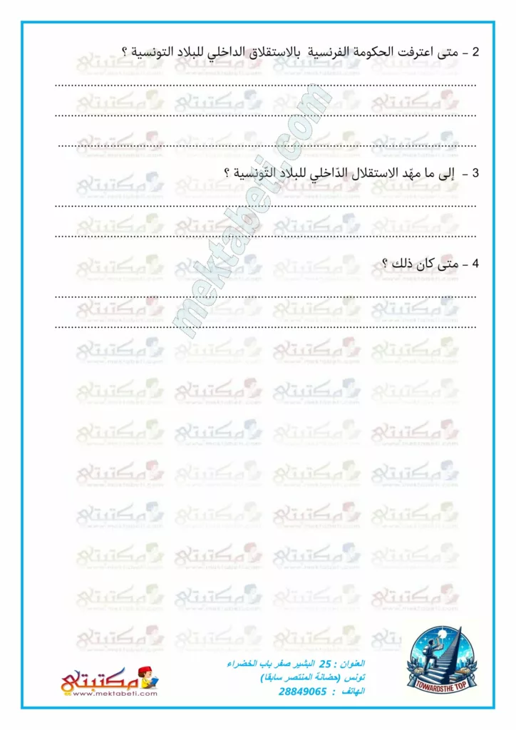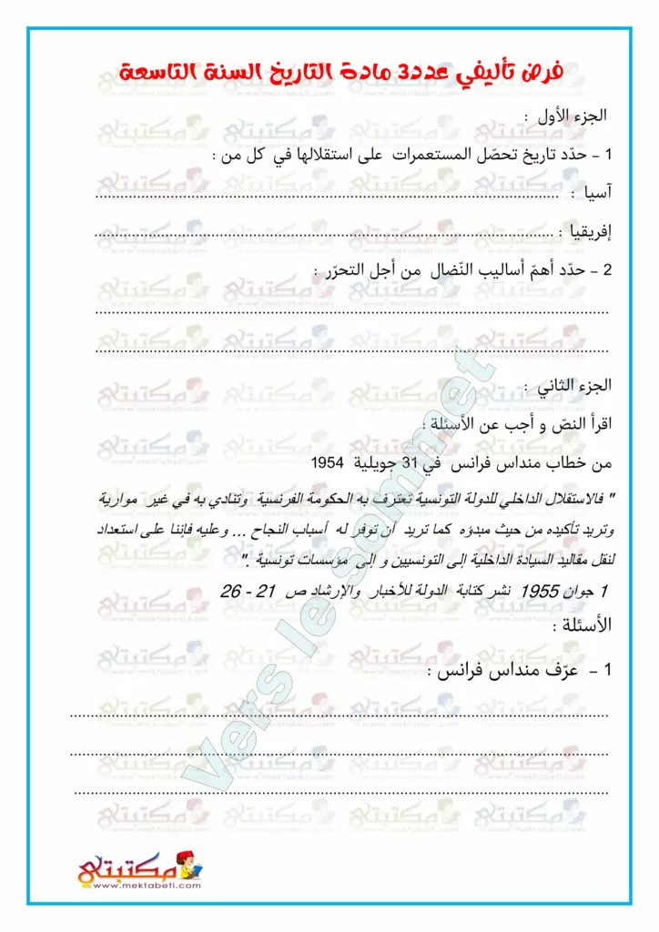 فرض تأليفي عدد3 مادة التاريخ السنة التاسعة