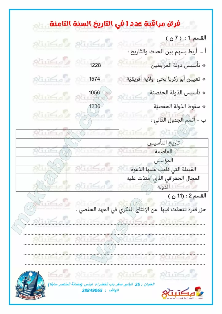فرض مراقبة عدد 1 في التاريخ السنة الثامنة