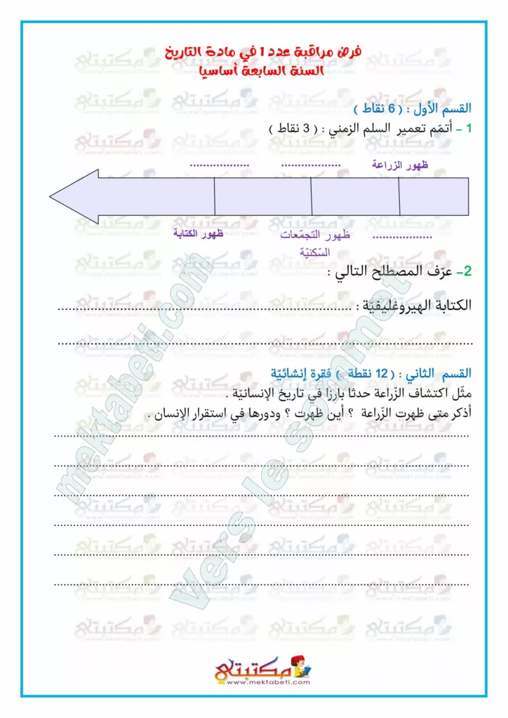 فرض مراقبة عدد 1 مادة التاريخ السنة السابعة أنموذج 2