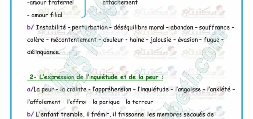 Vocabulaire l’expression des sentiments 9 ème année