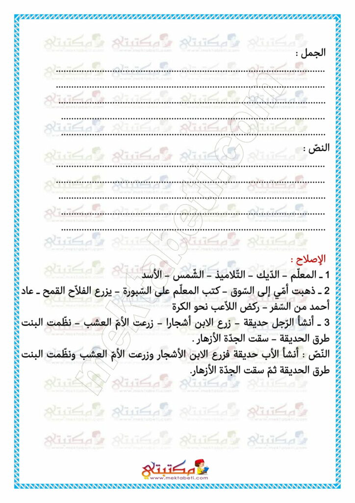 امتحان في مادة الكتابة السنة الأولى الثلاثي الثالث