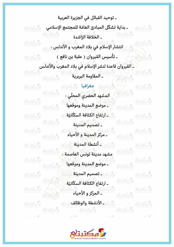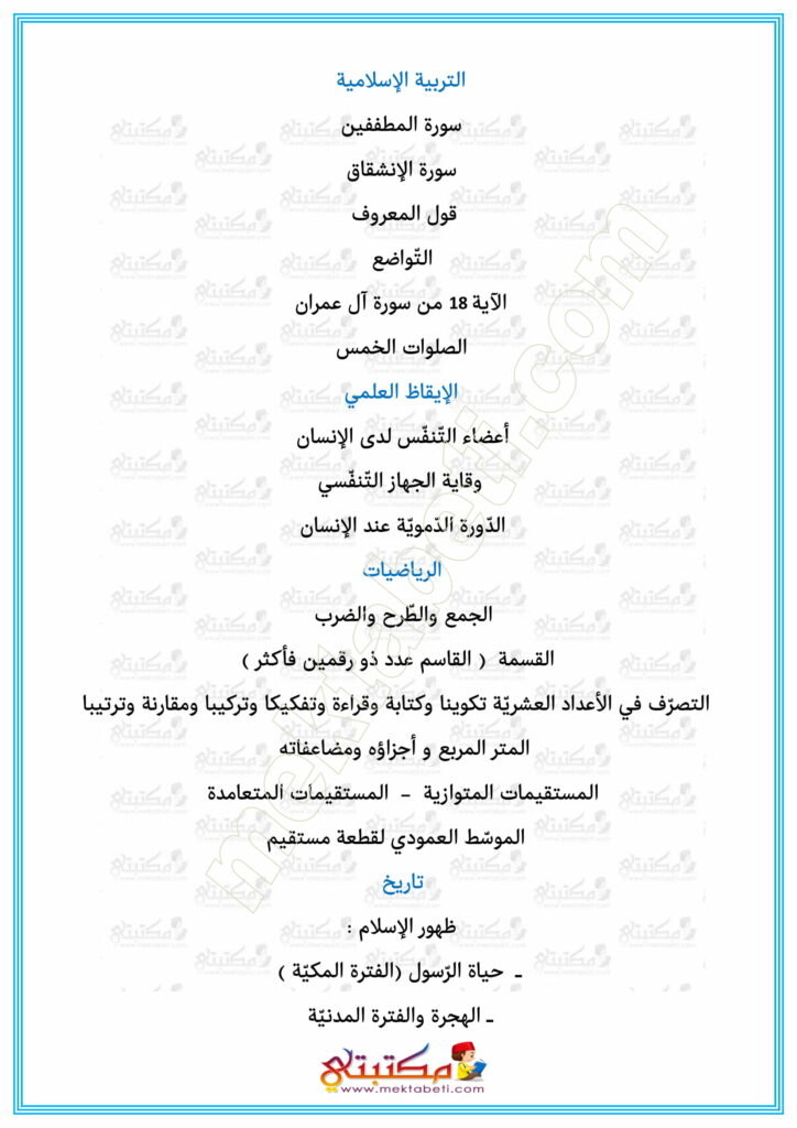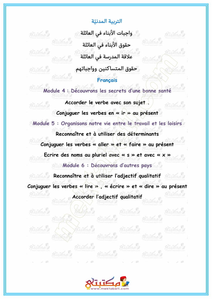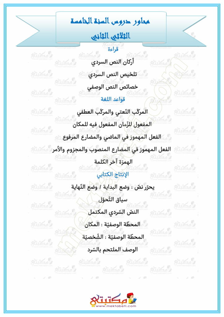 محاور دروس السنة الخامسة الثلاثي الثاني بعد التخفيف