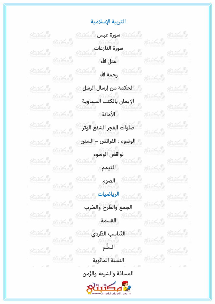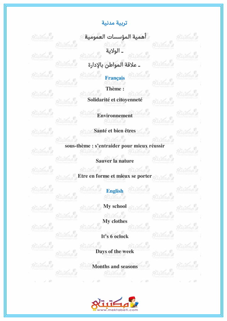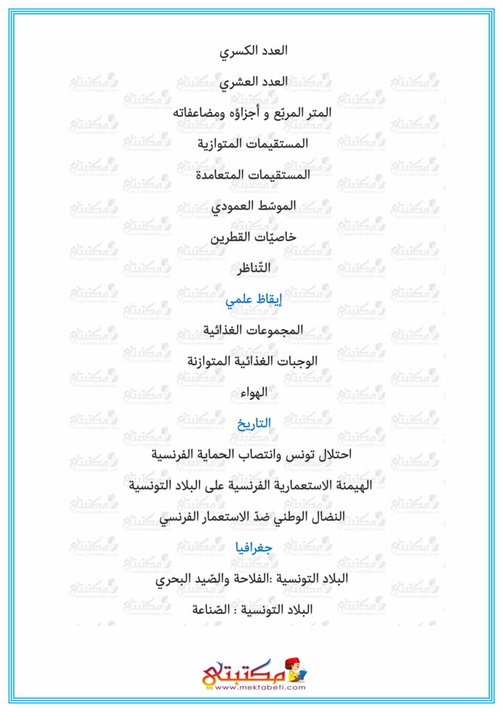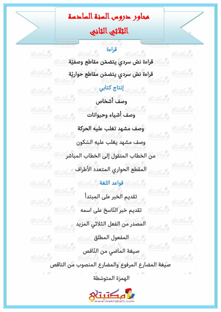 محاور دروس السنة السادسة الثلاثي الثاني بعد التخفيف