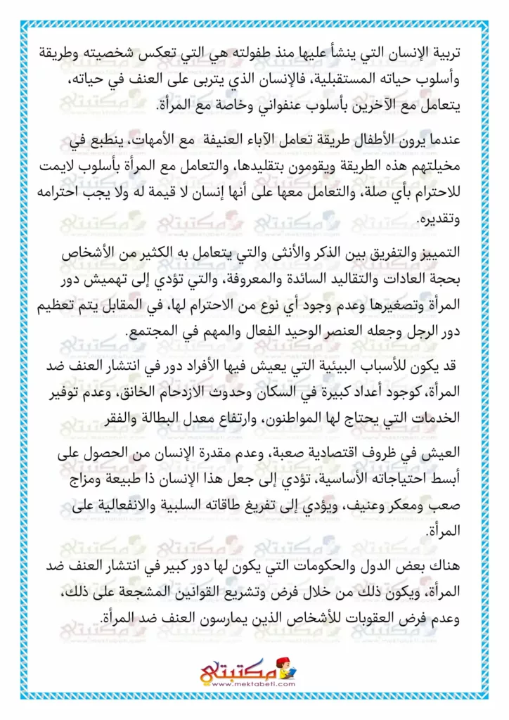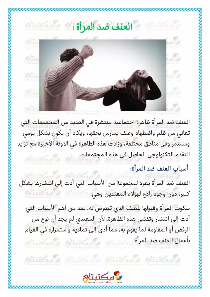 بحث حول العنف ضد المرأة