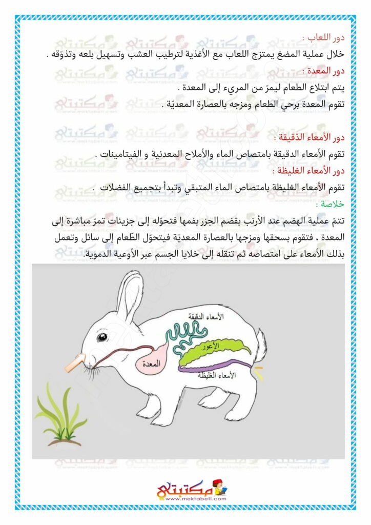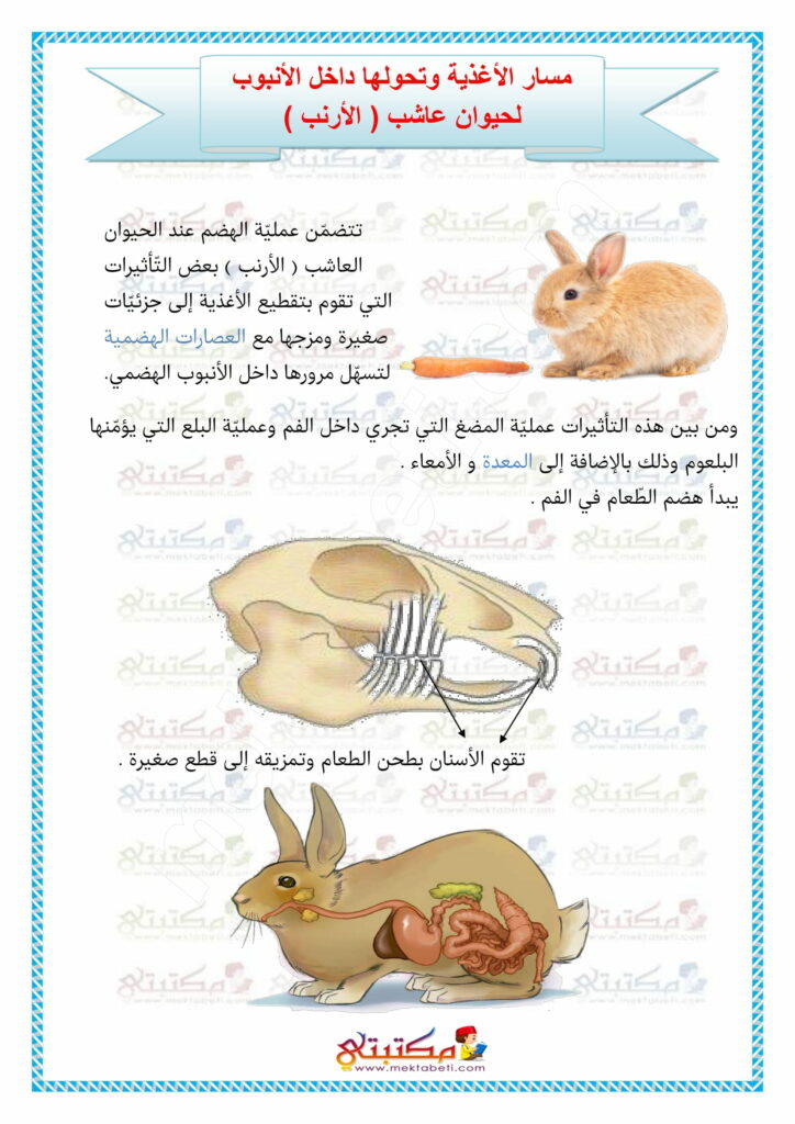 مسار الأغذية وتحولها داخل الأنبوب لحيوان عاشب الأرنب