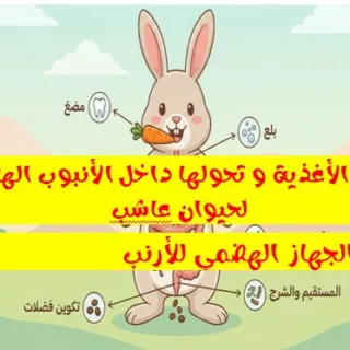 مسار الأغذية و تحولها داخل الأنبوب الهضمي لحيوان عاشب الجهاز الهضمي للأرنب