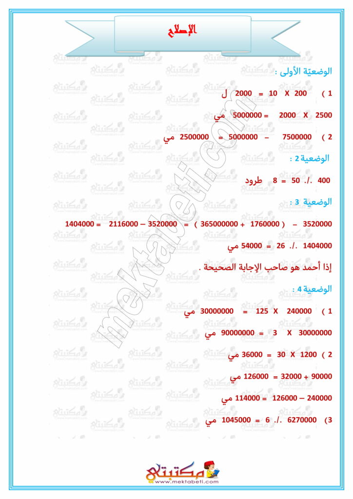 تدريب على حل المسائل السنة الخامسة الثلاثي الثاني