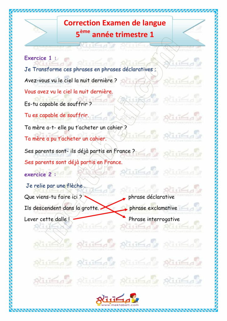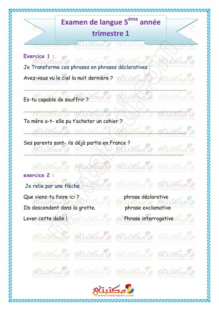 Examen de langue 5ème année trimestre 1