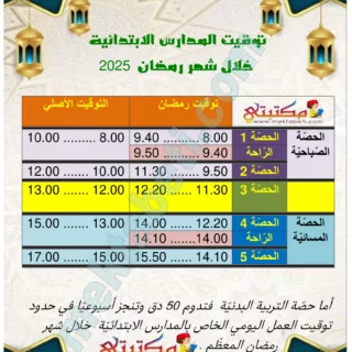 توقيت المدارس الابتدائية خلال شهر رمضان 2025