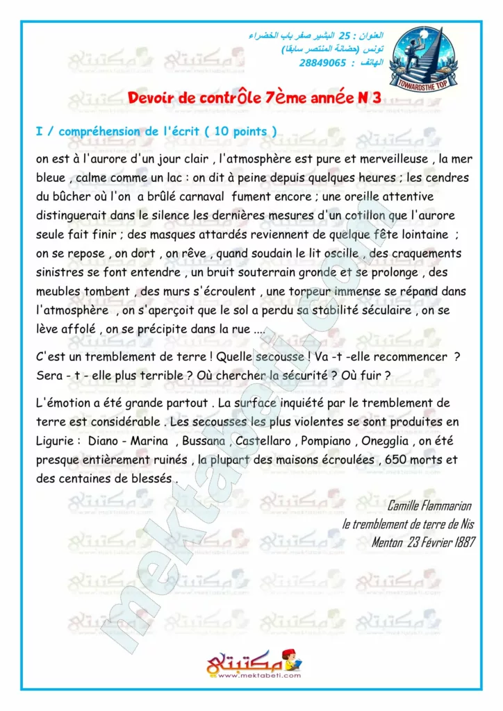 Devoir de contrôle 7ème année N 3