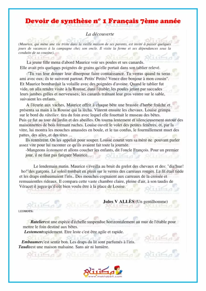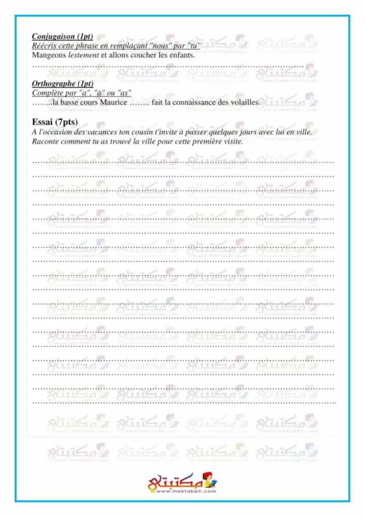Examen de production écrite 3ème année trimestre 2 avec la correction