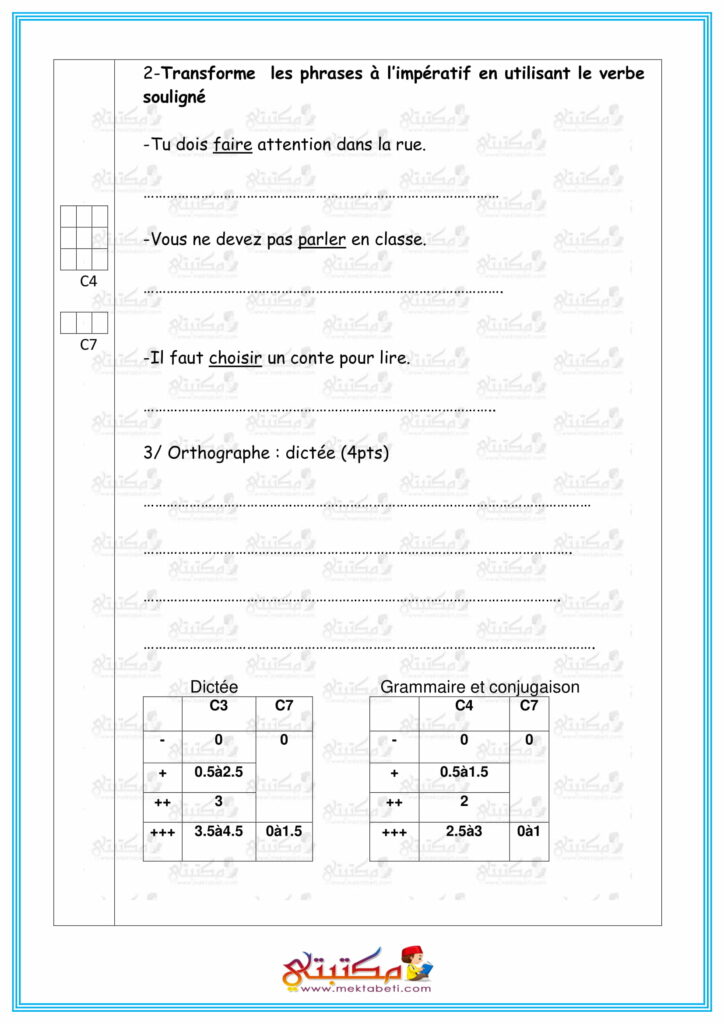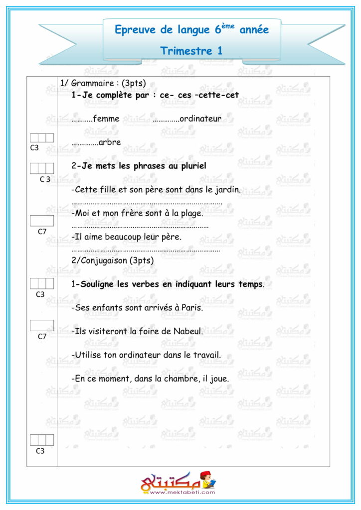 - Français / أساسي / الثلاثي الأول / امتحانات / امتحانات / سادسة إبتدائي