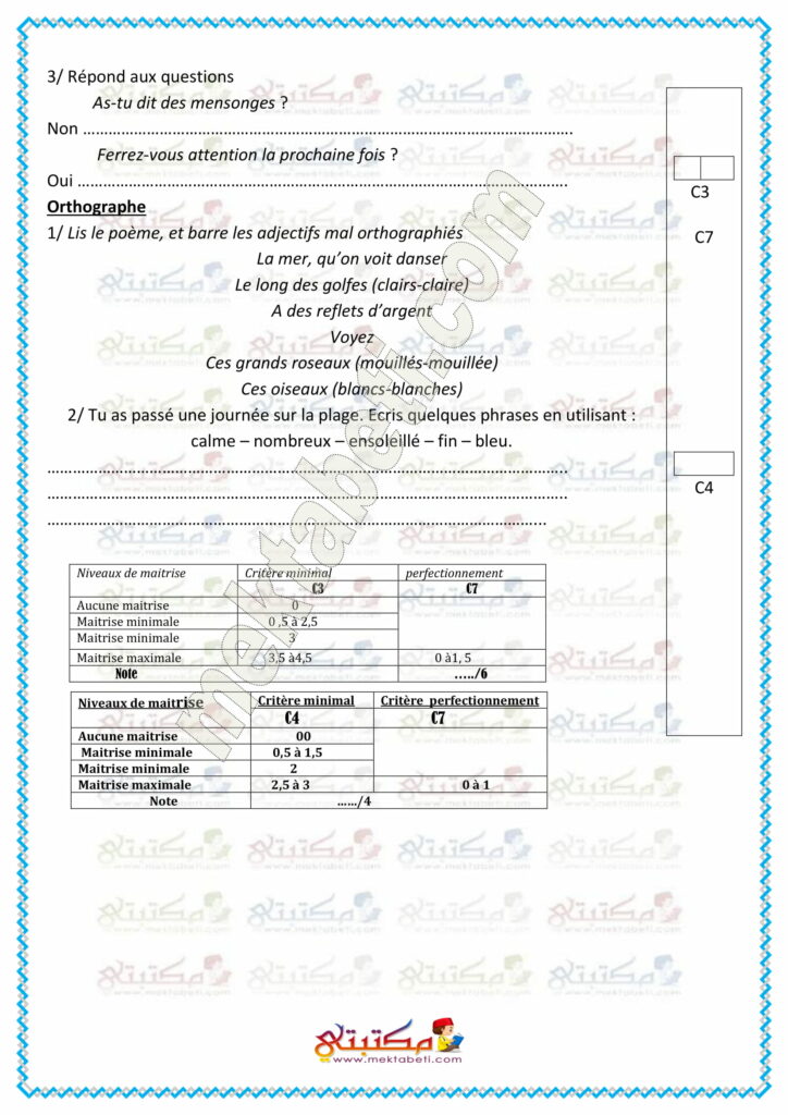 - Français / أساسي / الثلاثي الثالث / امتحانات / سادسة إبتدائي