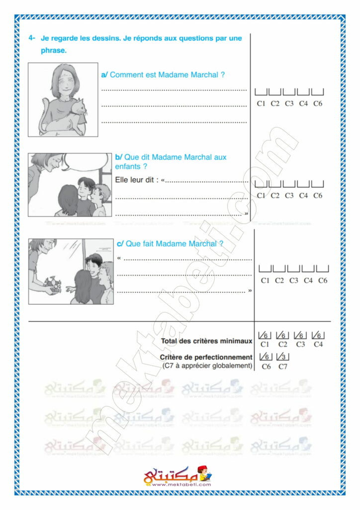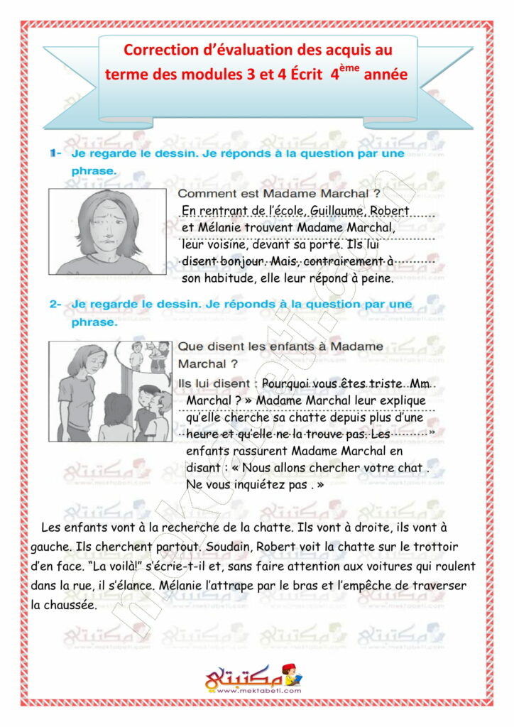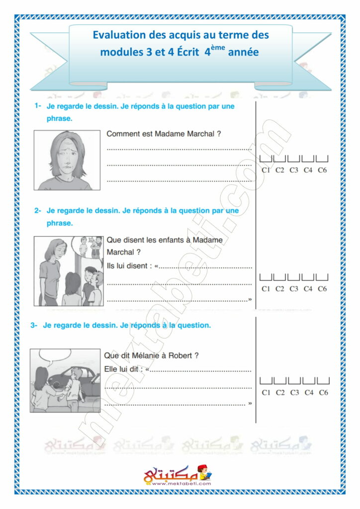 Évaluation des acquis au terme des modules 3 et 4 Écrit 4ème année