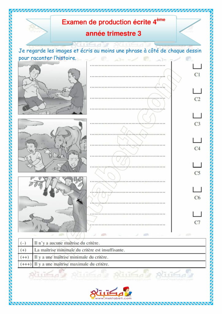 Examen de production écrite 4ème année trimestre 3