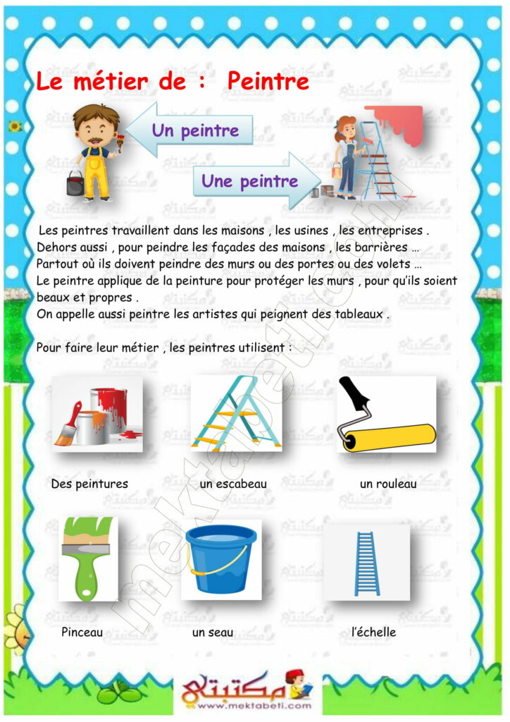 Les peintres travaillent dans les maisons , les usines , les entreprises . Dehors aussi , pour peindre les façades des maisons , les barrières …