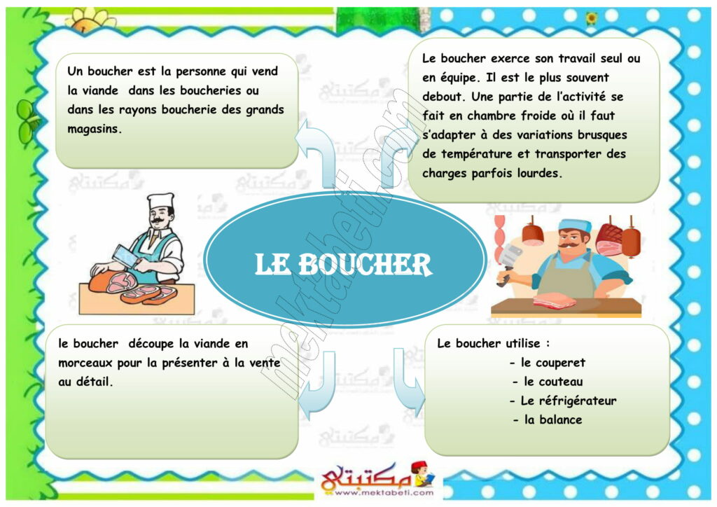 Le boulanger – le médecin – le pompier – le menuisier – le boucher – le policier