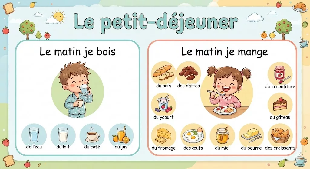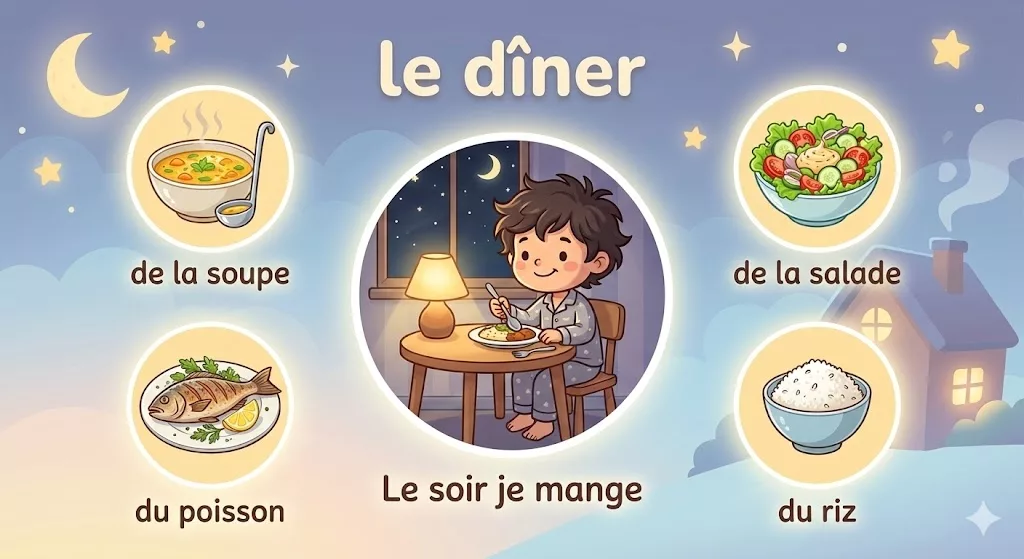 Les repas : le petit déjeuner – le déjeuner – le dîner