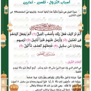 سورة الفيل – أسباب النزول – تفسير – تمارين