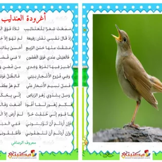محفوظات أغرودة العندليب سَـمِـعْـتُ شِـعْـرًا لِـلْـعَـنْـدَلِـيبِ تَـلَاهُ فَـوْقَ الْـغُـصْـنِ الرَّطِيبِ إِذْ قَـالَ نَـفْـسِـي نَـفْسٌ رَفِيعَة لَـمْ تَـهْـوَ إِلَّا حُـسْـنَ الـطَّـبِيعَة عَـشِـقْـتُ مِـنْـهَـا حُسْنَ الرَّبِيعِ أَحْـسِـنْ بِـذَاكَ الْـحُسْنِ الْبَدِيعِ فَالْعَيْشُ عِنْدِي فَوْقَ الْغُصُونِ لَا فِــي...